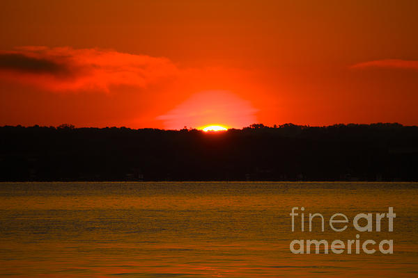 The sun rising over Seneca Lake in the Finger Lakes region of NY